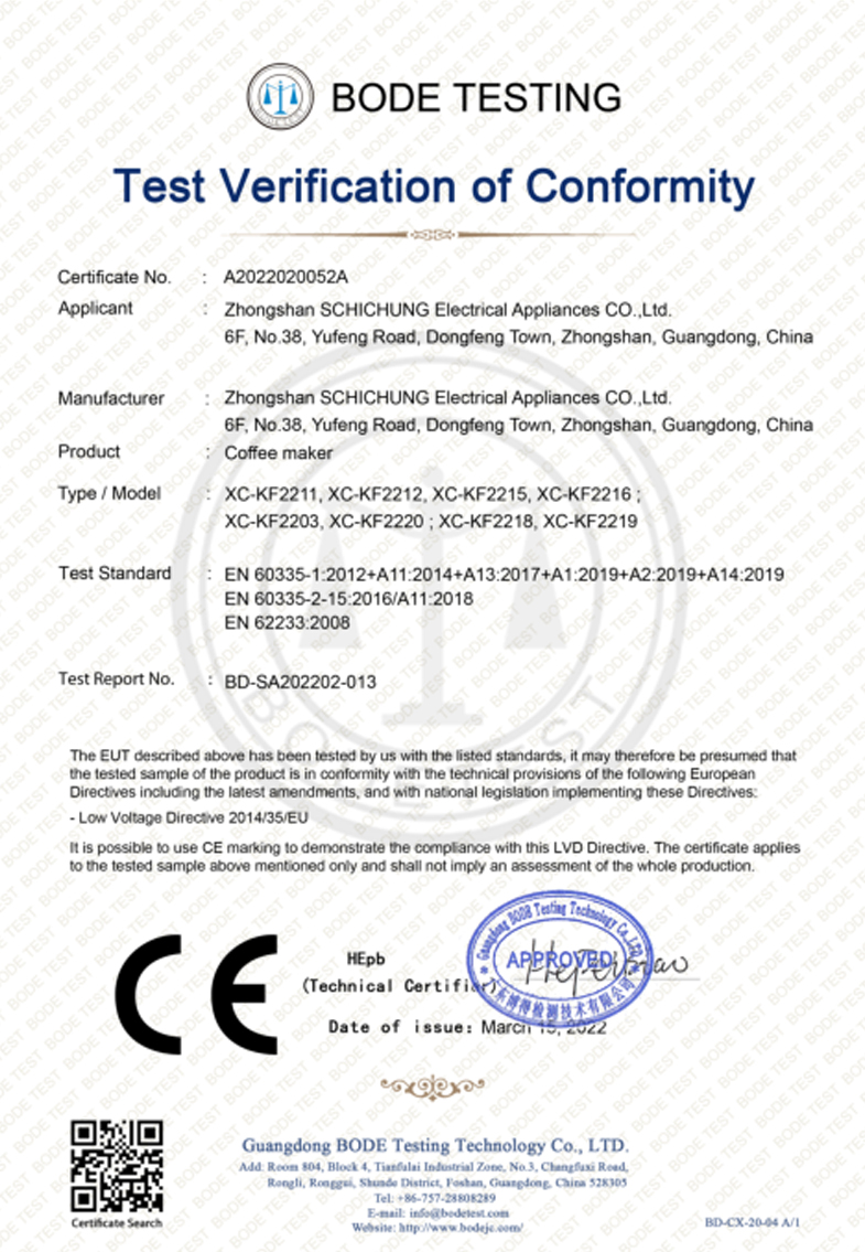 咖啡機CE證書